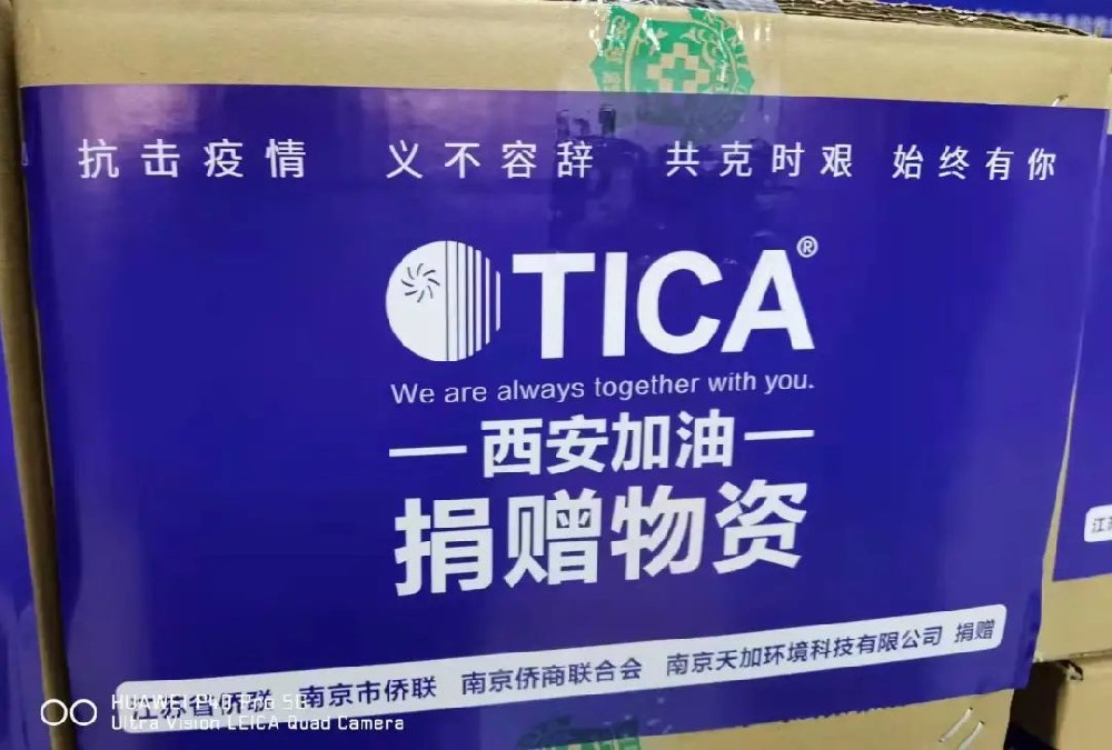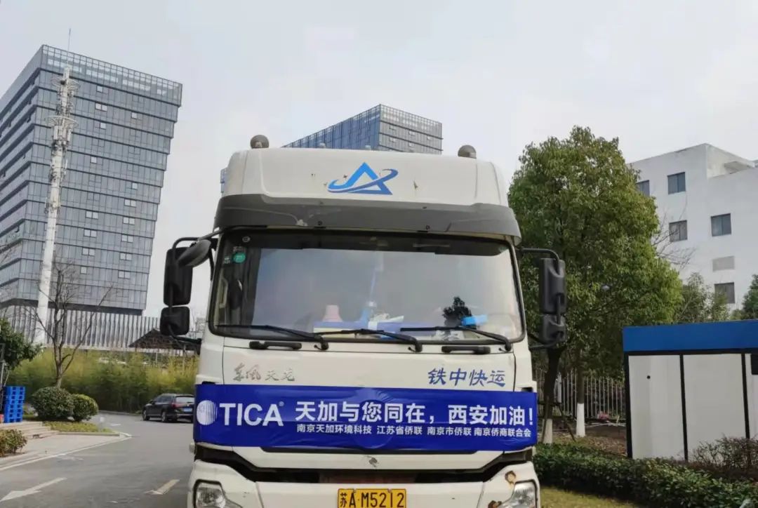 江蘇省僑聯(lián)、南京市僑聯(lián)、南京市僑商聯(lián)合會(huì)、南京天加環(huán)境科技有限公司向南京萬福金安生物醫(yī)藥科技緊急采購價(jià)值百萬的消毒物品馳援西安。